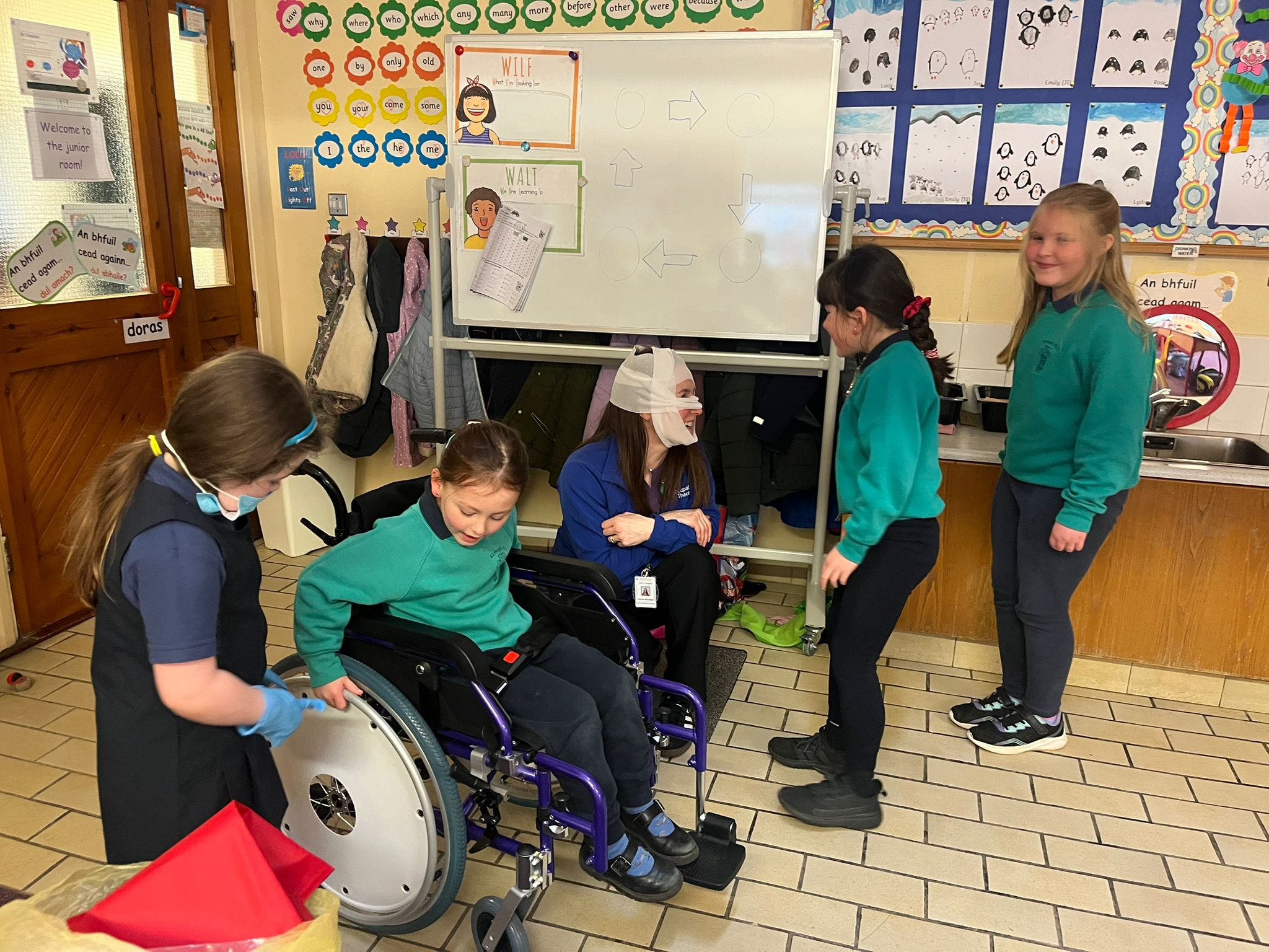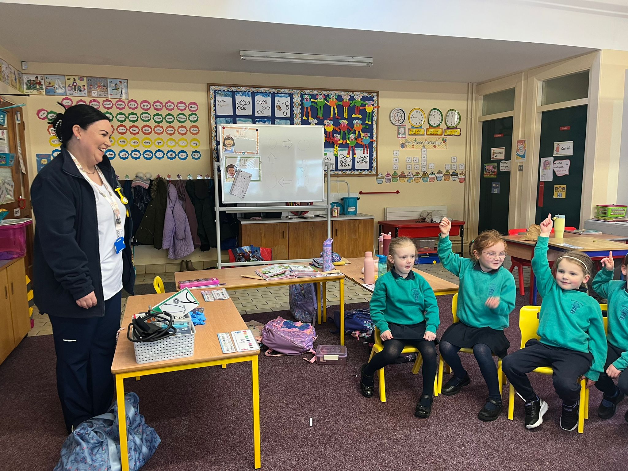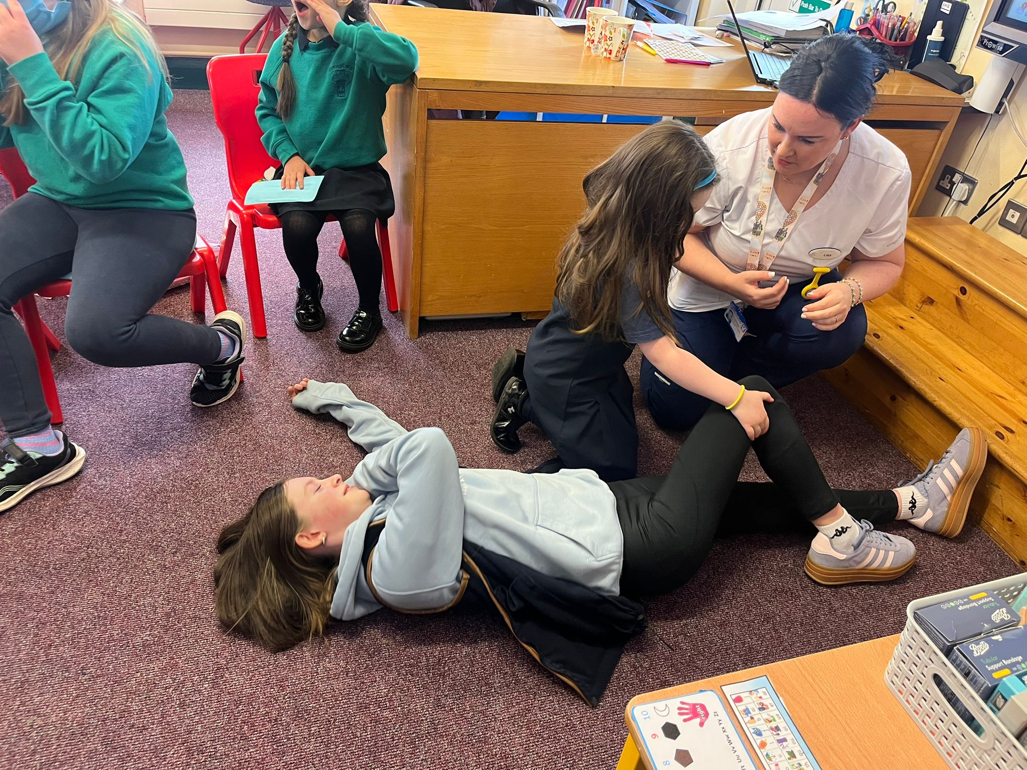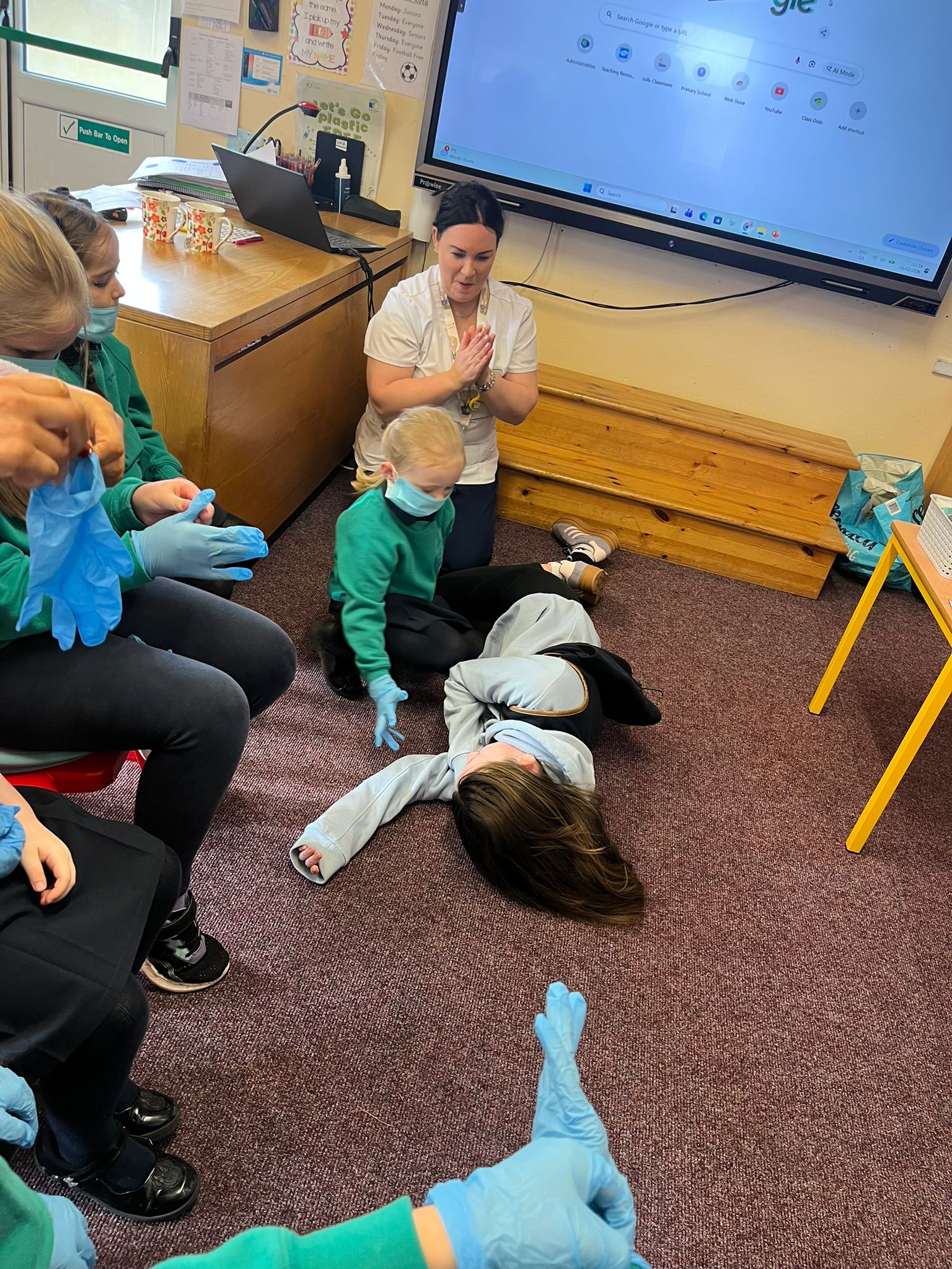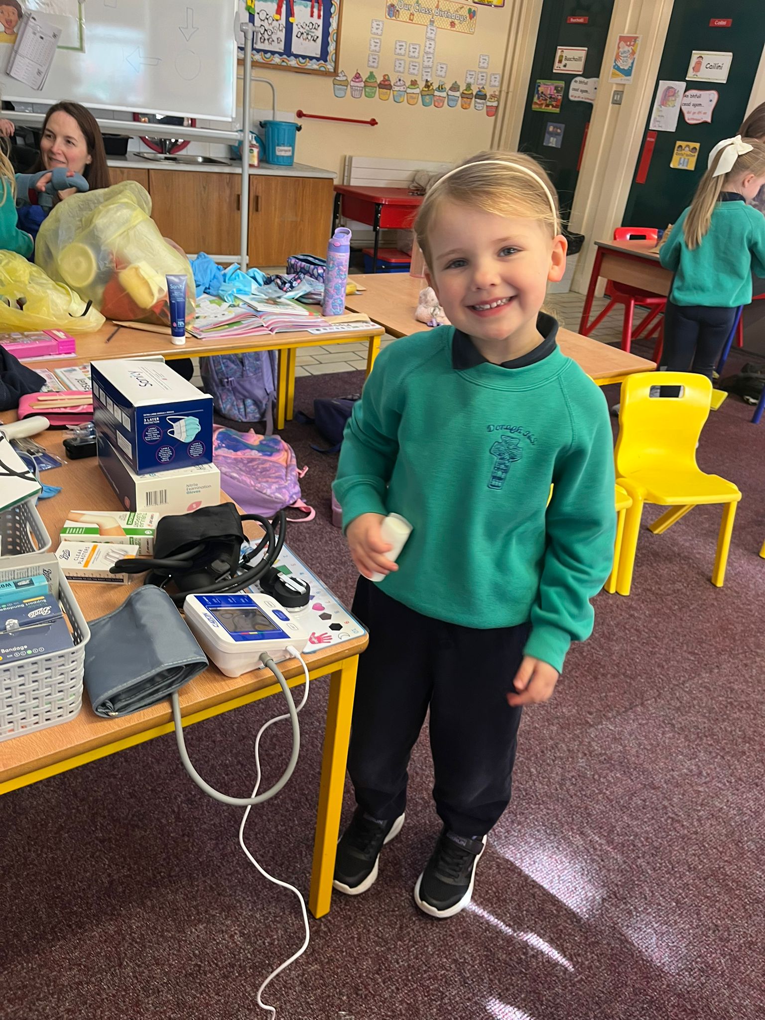 We were working on the theme of The Hospital in February and we welcomed Nurse Lisa and Occupational Therapist Jennifer in to the Junior Classroom. They talked to us about their jobs and how they help people in hospitals and in the community. They had a lot of equipment that we were able to try out! Now we know how to put someone in the recovery position too! Thank you so much Lisa and Jennifer.